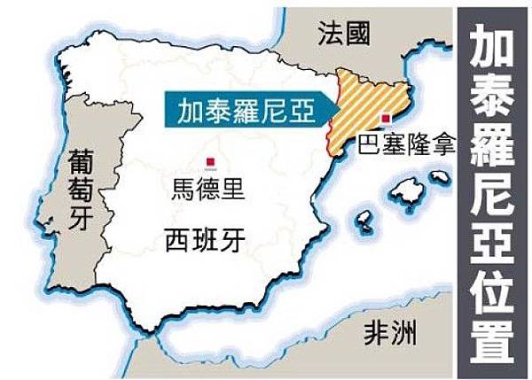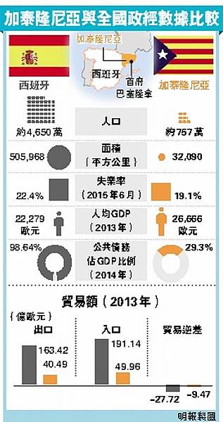 另外,加泰隆尼亞獨立或許能繼續留在歐元區,但自動退出歐盟是跑不掉的代價,加泰隆尼亞若想留在歐盟就必須獲得全體成員國同意,包括鬧翻臉的西班牙,讓這個希望恐將難以達成。而失去歐盟席位後,恐會帶給加泰隆尼亞的很大的噩夢,因為歐盟佔加泰隆尼亞出口的65.8%,這也使得加泰隆尼亞將付出龐大的過度成本。
