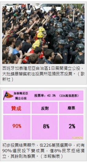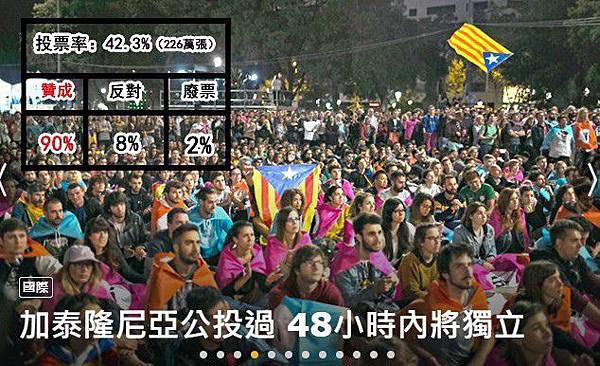 加泰隆尼亞公投過關 自治區政府將在48小時內宣布獨立