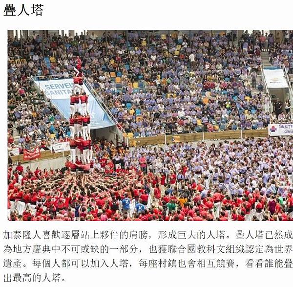 底下是加泰隆的幾個獨特面向,從語言、藝術到建築、美食──以及疊人塔都充滿獨特性。