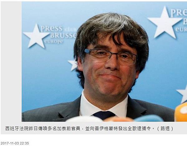 〔即時新聞/綜合報導〕繼加泰隆尼亞片面宣告獨立後,遭西班牙當局解散自治政府並於昨(2)日傳喚多名加泰前官員出庭應訊,加泰前主席普伊格蒙特事先逃往比利時,西班牙法院已向普伊格蒙特等人發出全歐逮捕令。