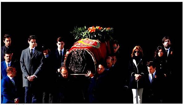 工作人員神情肅穆將棺木抬出,長眠裏頭的是西班牙獨裁政權領袖佛朗哥。他原本安葬在烈士谷大教堂陵墓,但因為這裡同時葬有西班牙內戰期間的數萬名死者,引發獨裁加害人與受害人同葬一處的爭議。去年上台的西班牙社會勞工黨政府,決定將佛朗哥遷葬,經過一連串法律攻防,西班牙最高法院最後裁決,將佛朗哥的遷葬至明哥魯比歐國家墓園,與過世的妻子一同長眠。
