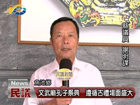 南投縣各界紀念大成至聖先師2567周年聖誕釋奠典禮,28日在日月潭文武廟舉行,由南投縣長林明溱擔任正獻官、文武廟董事長張德林主祀,立委蔡培慧、縣議員謝明謀分任監禮官、糾儀官;魚池國中、國小及新城國小學子擔綱佾舞演出,遵循古禮祭祀,隆重莊嚴。