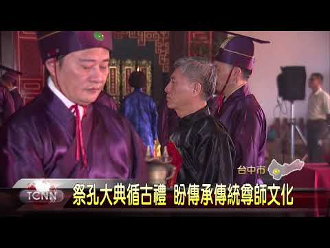 台中市孔廟大成殿一早6時許就陸續湧進民眾,前來參加祭孔大典,儀式在7時開始,樂生、佾生及禮生分立就位,現場迎神奏樂,隊伍由大成門的中門進入天井,全體參禮者行禮,依序進行迎神、上香、獻帛、獻爵、行三獻禮、飲福受胙到完成送神、燃祝帛的望燎儀式。