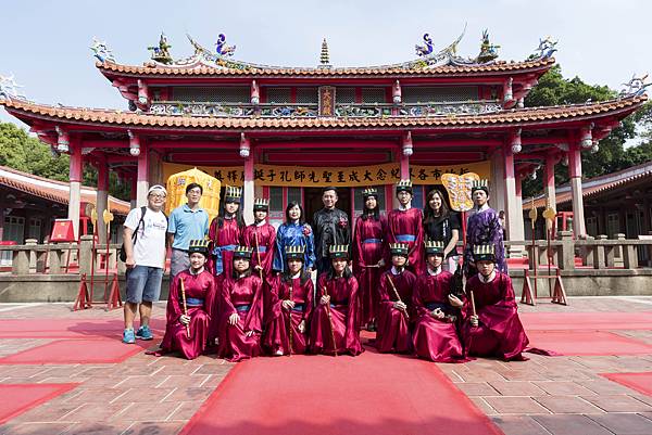 巴西籍翁一翔、李琳及比利時籍陳冠傑是來台交換學生,都是17歲,他們穿著古服隨行,參與迎孔子聖像典儀,大感新鮮,熱情參與,認識對台灣宗教文化及寺廟建築之美,也對台灣燠熱的秋老虎感受深刻,直呼「很熱」。