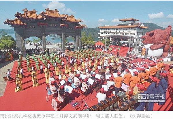 南投縣祭孔釋奠典禮今年在日月潭文武廟舉辦,場面盛大莊嚴。(沈揮勝攝)