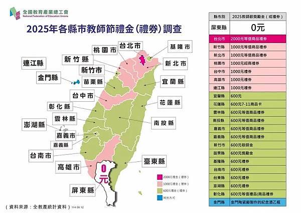 全教總統計各縣市教師節禮金。(圖/全教總)