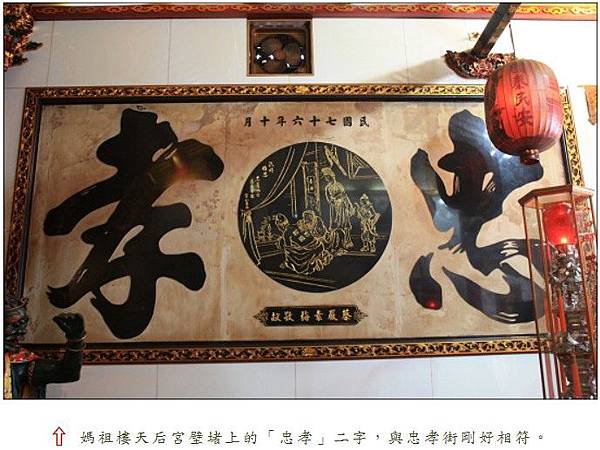 「忠孝」二字匾額,是太平國小鎮校之寶,校方愛之深,竟在校慶前,重新上了金箔片,犯了古物修復大忌,不再是修復如舊。忠孝二字原跡的蒼勁力道,全遭破壞。 圖片取自http://pics6.blog.yam.com/18/userfile/t/tomo25/blog/14a7f84dba27ab.jp