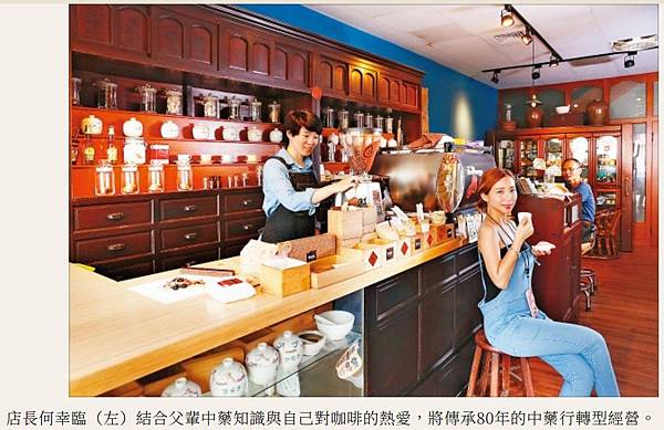 店長何幸臨(左)結合父輩中藥知識與自己對咖啡的熱愛,將傳承80年的中藥行轉型經營。(記者臺大翔/攝影)