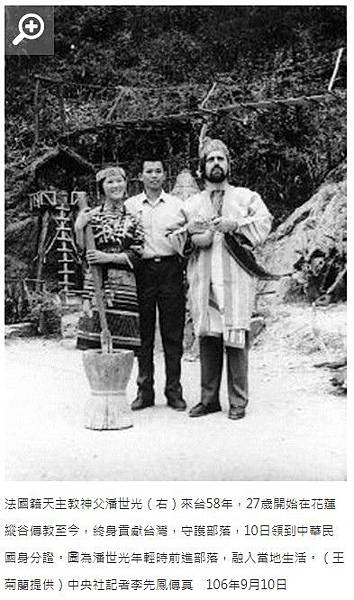 中央社記者李先鳳傳真 106年9月10日法國籍天主教神父潘世光(右)來台58年,27歲開始在花蓮縱谷傳教至今,終身貢獻台灣,守護部落,10日領到中華民國身分證。圖為潘世光年輕時前進部落,融入當地生活。(王菊蘭提供)中央社記者李先鳳傳真 106年9月10日