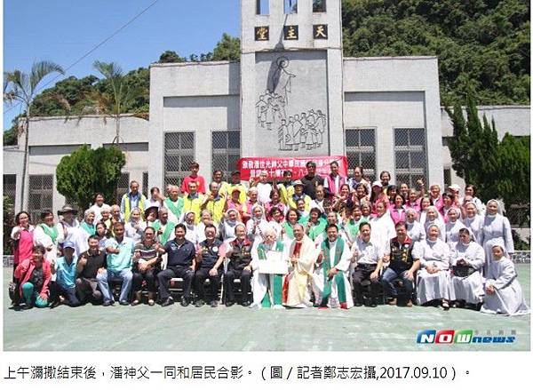 上午瀰撒結束後,潘神父一同和居民合影。(圖/記者鄭志宏攝,2017.09.10)。