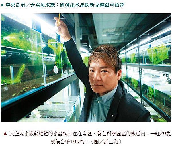 今年三十九歲的天空魚水族董事長蘇耀龍,就是這樣的人。他原本在台北從事攝影工作,工作之餘玩水草缸造景,二○○五年偶然在造景同好家中看到紅白水晶蝦,一見鍾情。