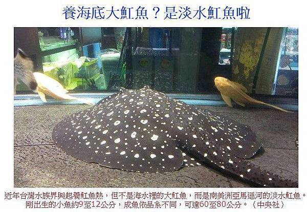 近年台灣水族界興起養魟魚熱,但不是海水裡的大魟魚,而是南美洲亞馬遜河的淡水魟魚;剛出生的小魚約9至12公分,成魚依品系不同,可達60至80公分。