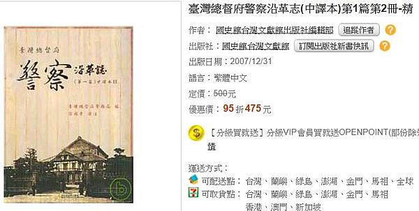 當,我開始關注及搜集台灣近現代史相關史/資料的50年代中葉時,甚快發現了《台灣警察沿革志》的存在。給予線索的則為下列三本書。