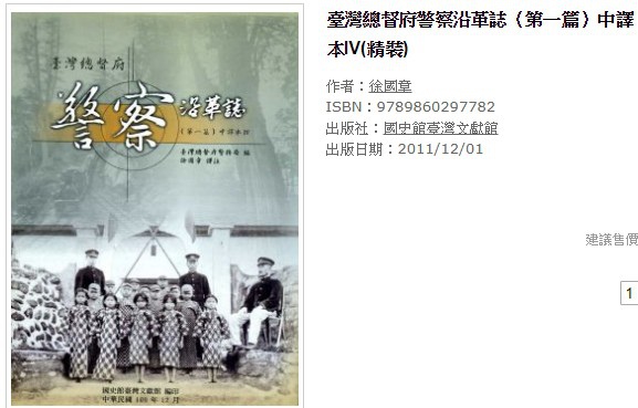 《警察沿革誌》(第一篇)中譯本至此業已完成,併同《臺灣教育沿革誌》、《臺灣文化志(修訂版)》,為本館近幾年來推動臺灣史日文舊籍翻譯工作的三大標的。前此,《臺灣教育沿革誌》、《臺灣文化志(修訂版)》已先後出版問世,階段性翻譯日文舊籍工作暫告一段落,希冀翻譯成果能對讀者研究日治臺灣史有所裨益。