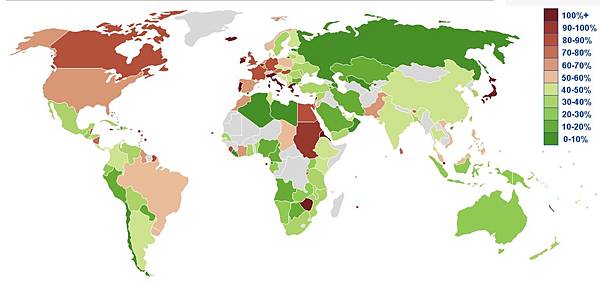 目前,希臘已經接受超過 3,200億歐元(折台幣約 11兆9,840億元)的金援,看起來希臘越來越不可能還清這筆債,尤其希臘得實施痛苦的撙節措施以換取貸款。歐盟預測今年年底希臘國債對上GDP的比例會高達 185%不過,令人驚訝的是希臘居然不是全球負債程度最嚴重的國家。