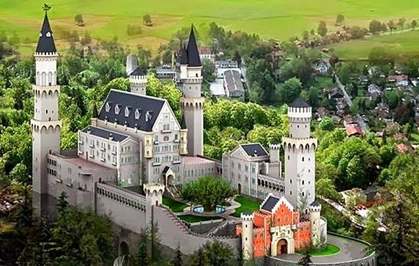 這座城堡是巴伐利亞國王路德維希二世的行宮之一。共有360個房間,其中只有14個房間依照設計完工,其他的346個房間則因為國王在1886年逝世而未完成。是德國境內受拍照最多的建築物。也是最受歡迎的旅遊景點之一。