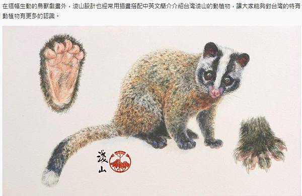 在這幅生動的鳥獸戲畫外,淺山設計也經常用插畫搭配中英文簡介介紹台灣淺山的動植物,讓大家能夠對台灣的特有動植物有更多的認識。