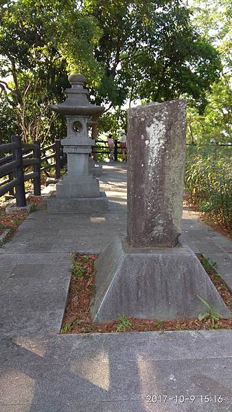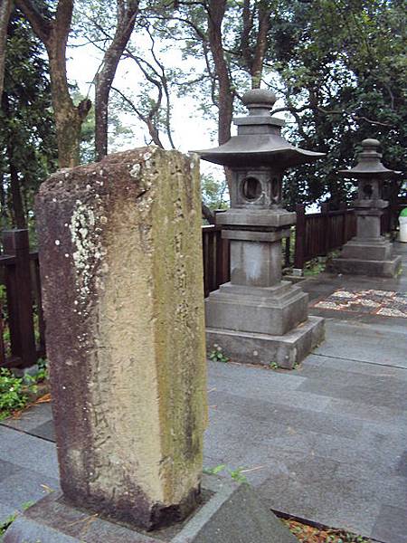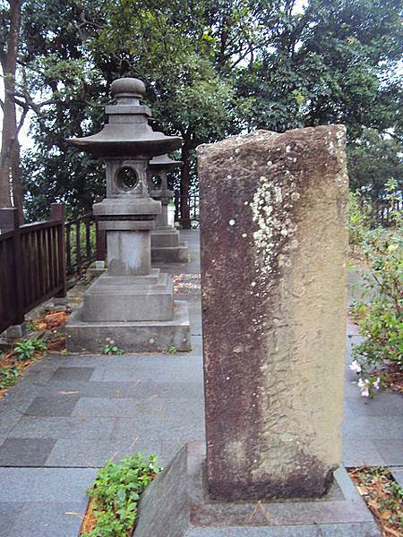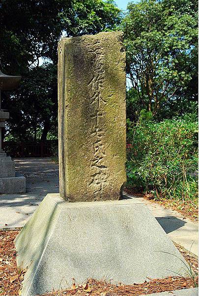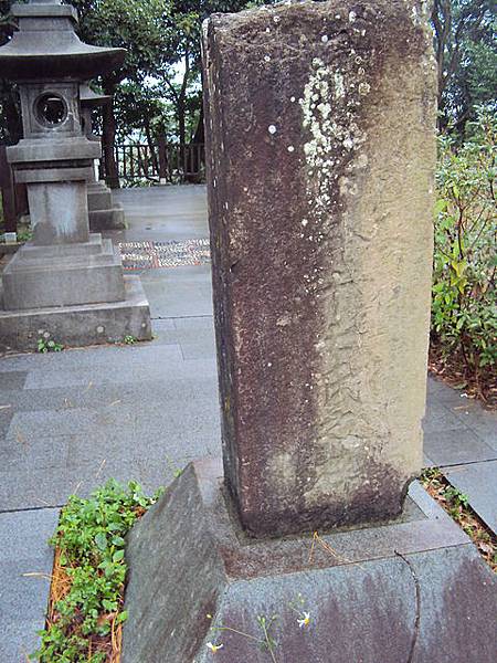 石燈籠旁的第三座石碑,被削去三分之一,只剩斷碑,碑石側面仍有清楚的字跡,寫著「十五日殉職」,