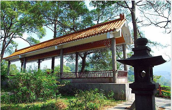 更旁側,則有一座長廊式的涼亭,可眺覽北埔內山方向的山巒景色。