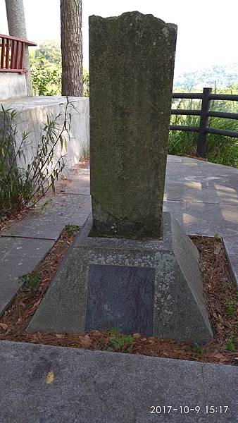 還在北埔秀巒山上的渡邊氏死亡紀念碑斷成三截後,重新豎起。圖:陳權欣/攝