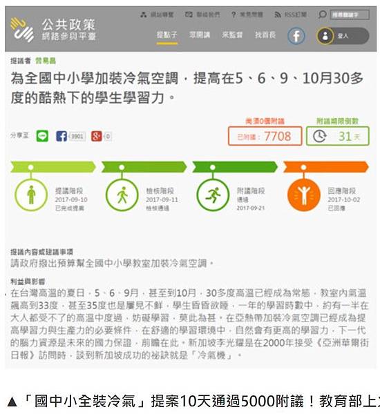 「國中小全裝冷氣」提案10天通過5000附議!教育部上火線回應 | ETNEWS生活 | ETNEWS新聞雲 - https://goo.gl/qhfAva