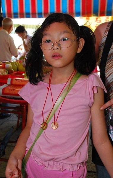 每年神明生日,家長帶著供品到寺廟神明前祭拜,同時換一條新線,稱為「換絭」。