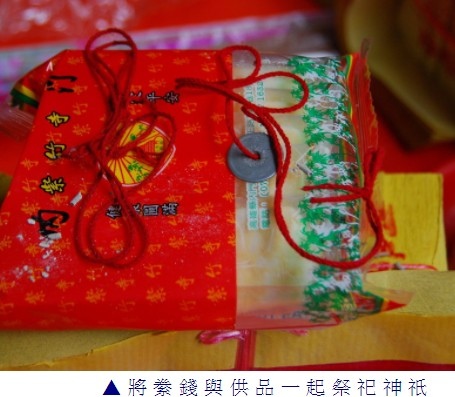 絭」。 一般在孩子周歲後,在寺廟或家中神明前祭拜後掛上神明的佑符(絭)。若所祈求為註生娘娘則掛「註生娘娘絭」;祈求七娘媽,則掛「七娘媽絭」。