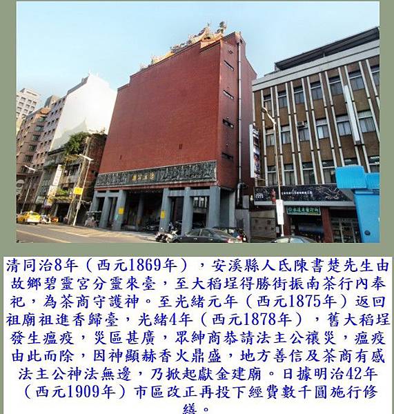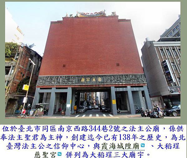 (註:臺北市南京西路334巷 舊稱為 法主宮街 ,古時兩旁都是茶行)