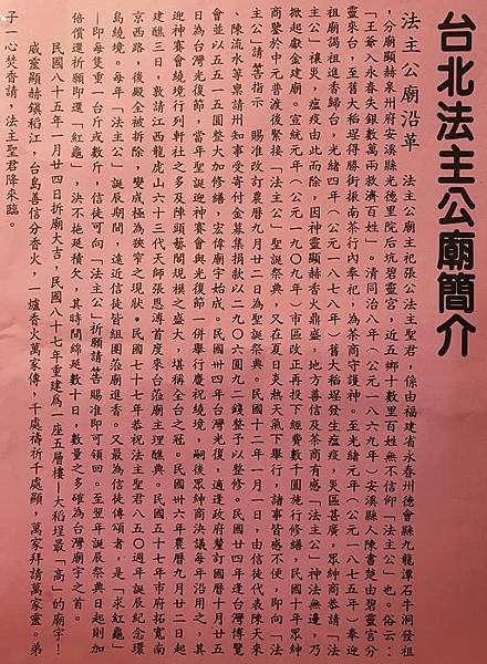 以下的資料許多和網路有出入,我的根據是法主公廟提供的,應該比較準吧!