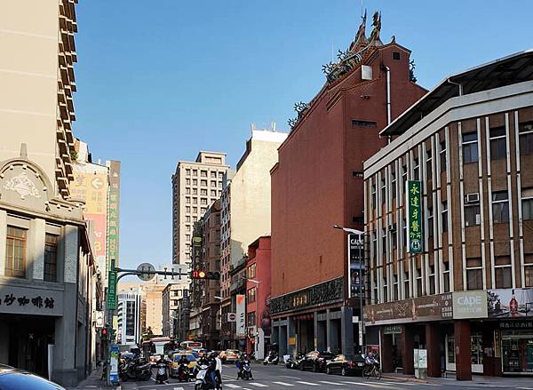拉近點看吧!就站在法主公廟正下方拍 隔著南京西路那棟建物即是天馬茶室(天馬茶房)改建的 (由天水路向南京西路拍 )
