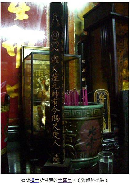 天蓬尺是一種道教的法器,又稱法尺,外觀是一根四面刻有符咒的四棱方形短木棍。