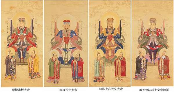 中天紫微北極大帝協助玉皇執掌天經地緯、日、月、星、辰、四時氣候;