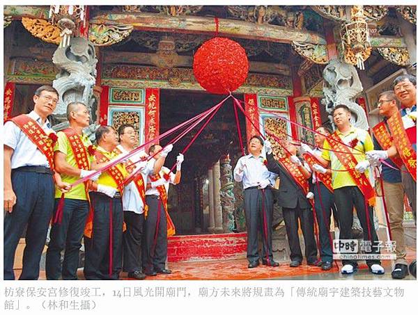 枋寮保安宮修復竣工,14日風光開廟門,廟方未來將規畫為「傳統廟宇建築技藝文物館」。(林和生攝)