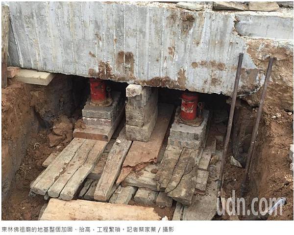 將近半世紀歷史的東林佛祖廟最近進行搬遷作業,台灣的工程團隊把廟的地基加固撐高。記者蔡家蓁/攝影