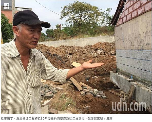 「廟的地基每次只能撐高3公分」,今年52歲的著名遷移工程師傅陳慶霖今天表示,他從小就跟在父親身旁學習,從事搬遷工程已經30多年,此次的搬遷是運用祖傳工法,先把地基加固,在使用鋼索移動。目前廟宇的地基已經完成加固,並已撐高15公分,未來幾天,還將升高超過一米,才能將廟宇移動至鄰近的柏油路面上。
