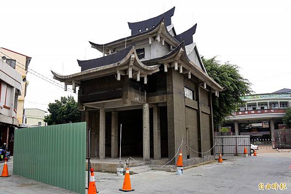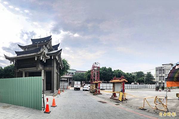 屏東縣潮州鎮福安宮去年原地重建,硬體接近完工之際,遭民眾提出佔用道路檢舉。(記者邱芷柔攝)