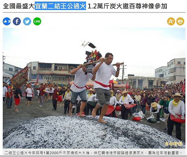 全國最盛大!宜蘭二結王公過火 準備1.2萬斤木炭燒成大火堆 - 宜蘭縣 - 自由時報電子報 https://bit.ly/3pukTFi