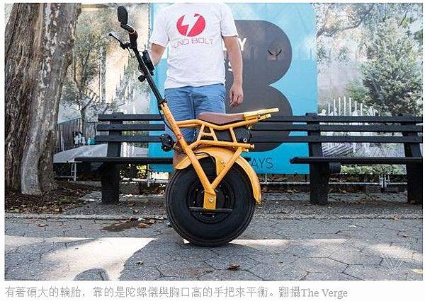在過去幾年內,小型、強力又負擔的起的電動車型幫許多新創公司攻佔個人通勤市場,包括電動滑板、可折疊的機車及電動單車,都有了真正的進步,最近選項又多了「Uno Bolt」電動單車。售價1500美元(約台幣4萬5000元)的Bolt是個自體平衡的單輪車,透過胸口高的手把及碩大的輪胎來加強穩定性,並使用陀螺儀防止翻倒,它重約20公斤、外型稍顯笨重但相當逗趣,它絕對不適合帶進公寓或辦公室。