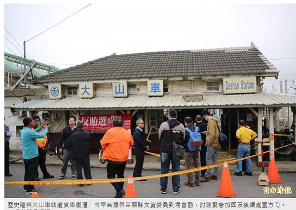 [記者鄭名翔/苗栗報導]苗栗縣歷史建物後龍鎮大山車站,昨遭酒駕貨車衝撞,近百年的珍貴木造建物半毀,今早苗栗文資委員及台灣鐵路局共同會勘,現階段將先以鋼樑加固建築物,再由台鐵於30天內向文化部爭取緊急搶修補助,後續待通盤檢測提出規畫設計及周邊防護措施後,預計半年內提出以恢復原貌為目標的重建計畫。