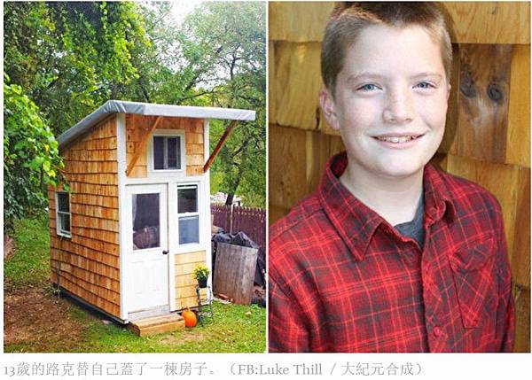 13歲的路克替自己蓋了一棟房子。(FB:Luke Thill /大紀元合成)