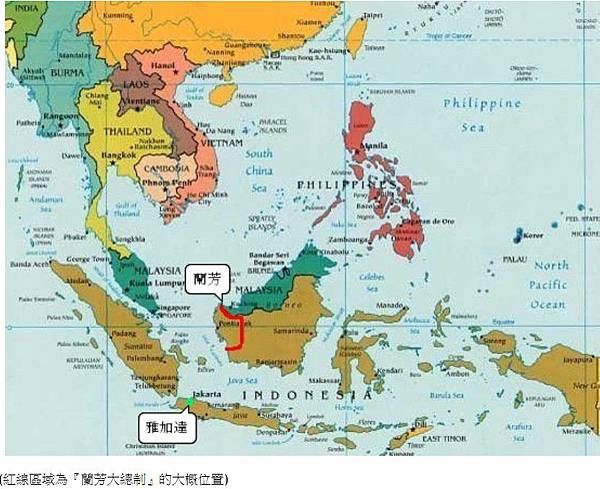 回歸正題,搭乘紅頭大眼雞出海的羅芳伯與百餘位廣東嘉應好漢,到了婆羅洲以後,首先落腳在婆羅洲西部的坤甸。