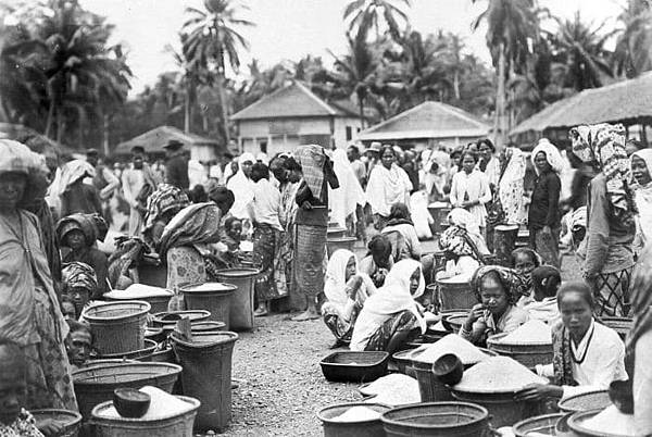 婆羅洲上越來越龐大的華人移民社群,有時與當地人關係緊張;羅芳伯創立蘭芳大統制,與當地蘇丹和部族結盟。圖為廿世紀初年的婆羅洲市場。(Source: Tropenmuseum, part of the National Museum of World Cultures / CC BY-SA 3.0)