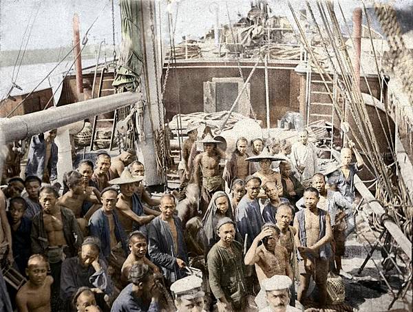 離鄉背井,搭著擁擠的苦力船下南洋謀生的華人移民。(Source: Hsu Chung-mao via Think China)