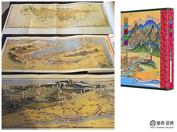 最誘人的就是內含27張1930年代臺灣各地大尺寸鳥瞰圖(折頁可展開,詳見左圖),這些當代知名畫師用富含藝術表現方式所繪製的地圖 ,令人愛不釋手。整本書還附有地圖圖說、明信片、老照片等參考資料共240頁,精裝附硬紙盒。以目前這種尺寸的地圖單價來看,實在太划算了,巷子內的朋友應該一看就懂了吧 :)