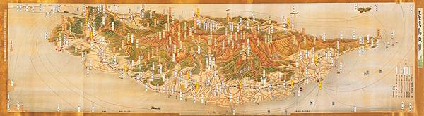 這些早期的地圖,一再被引用、翻印,成了懷古幽情的最佳圖像,然而一九三O年代所出現「台灣鳥瞰地圖」,由於出版當時僅流傳民間,因此散落各地,不僅難見於圖書館的收藏,連行政機關亦不知有這些圖繪。第一次發現這類鳥瞰圖是初中時在牯嶺街的舊書攤,我從地面上挑起了「新竹州鳥瞰圖」、「新高山阿里山案內」,以每張五元購得,當時即下宏願,要將全島各地區的鳥瞰圖蒐集完整。但是,此後卻很少再發現了。畢竟這些「遺珍」,是可遇不可求的。