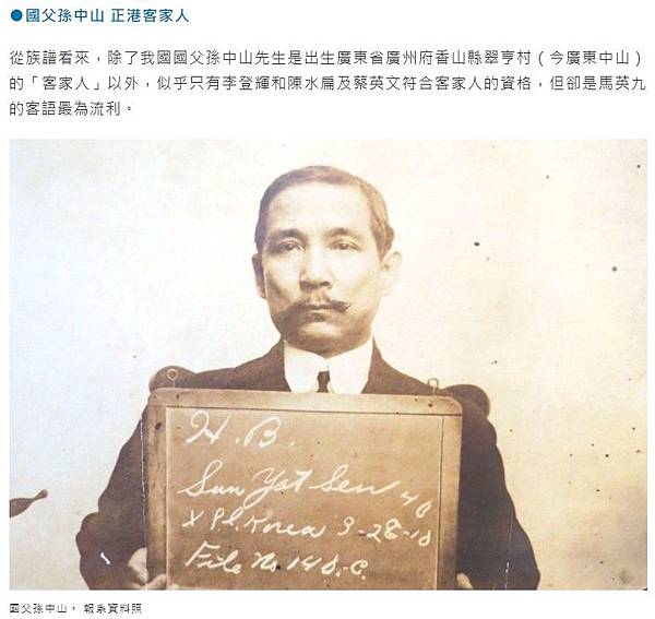從族譜看來,除了我國國父孫中山先生是出生廣東省廣州府香山縣翠亨村(今廣東中山)的「客家人」以外,似乎只有李登輝和陳水扁及蔡英文符合客家人的資格,但卻是馬英九的客語最為流利。