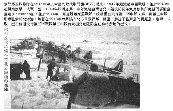 塗有應急迷彩的飛行第54戰隊的一式戰II型,參加了千島群島空戰,亦是二戰中最後的空戰