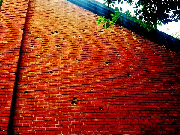 臺中的大型公共建築成為了第一打擊的目標,美軍甚至繪製的地 圖標示臺中的軍營、車站、公共場所以及工業設施等大型建築體。如今戰爭都已結束70多年,許多原本轟炸的痕跡早已修復,不過位於今文化資源園區內的倉庫山牆牆面上還留有彈痕,據耆老與彈痕痕跡因為機載機槍掃射的痕跡!目前該倉庫則作為舞蹈教室與展場使用。(3) 日治時期台灣懷舊照片文獻史料 | Facebook https://bit.ly/3ycYiAl
