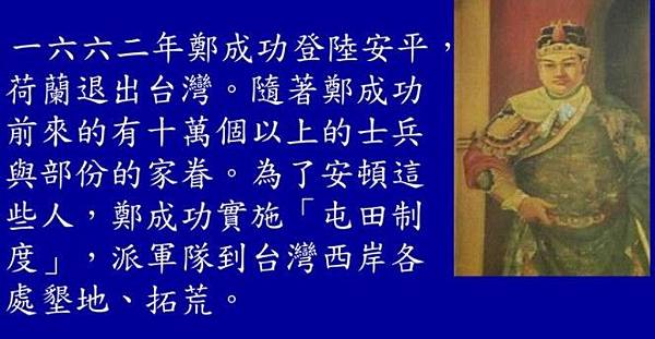 後來也證明出 閩籍反叛清政府勢力,往往藉由粵籍的軍屯武裝配合清軍平亂,達到清政府治台目的。