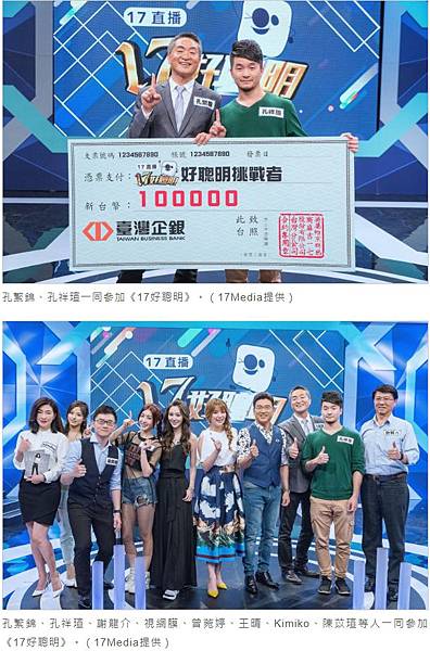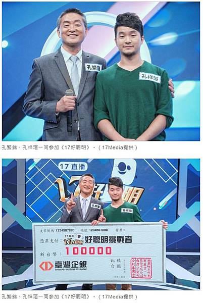 孔繁錦表示,他們一家人至今參加益智節目贏得的獎金累計已近百萬,而且他每次都捐出作慈善公益,這次《17好聰明》的獎金,他和兒子均分一人各5萬,他的部分依然將捐出,兒子孔祥瑄的部分由他自己決定用途。